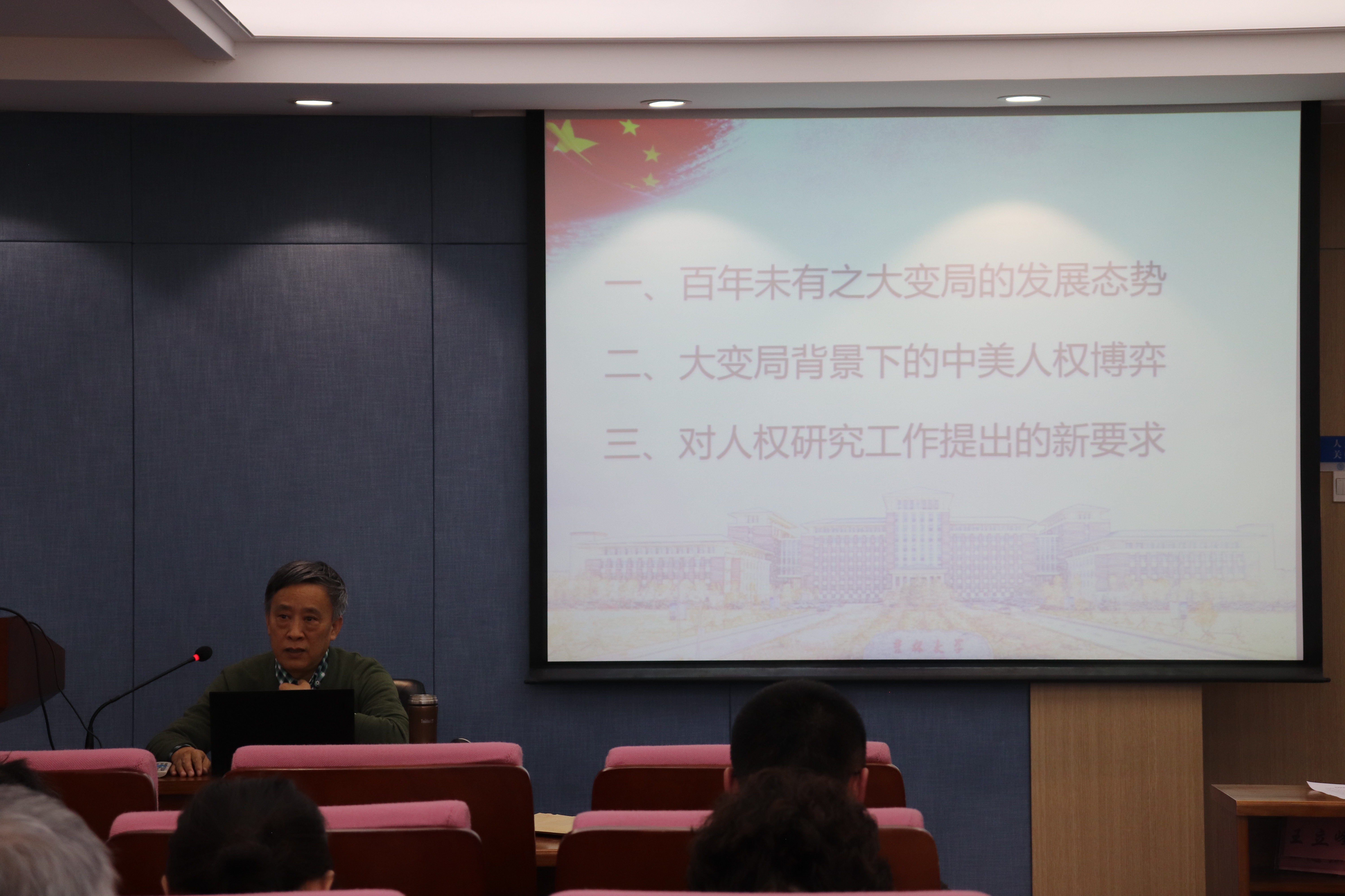 就“百年未有之大变局背景下的人权研究工作”,做专题学术报告。报告会由院长、人权研究中心执行主任何志鹏教授主持,91论坛
