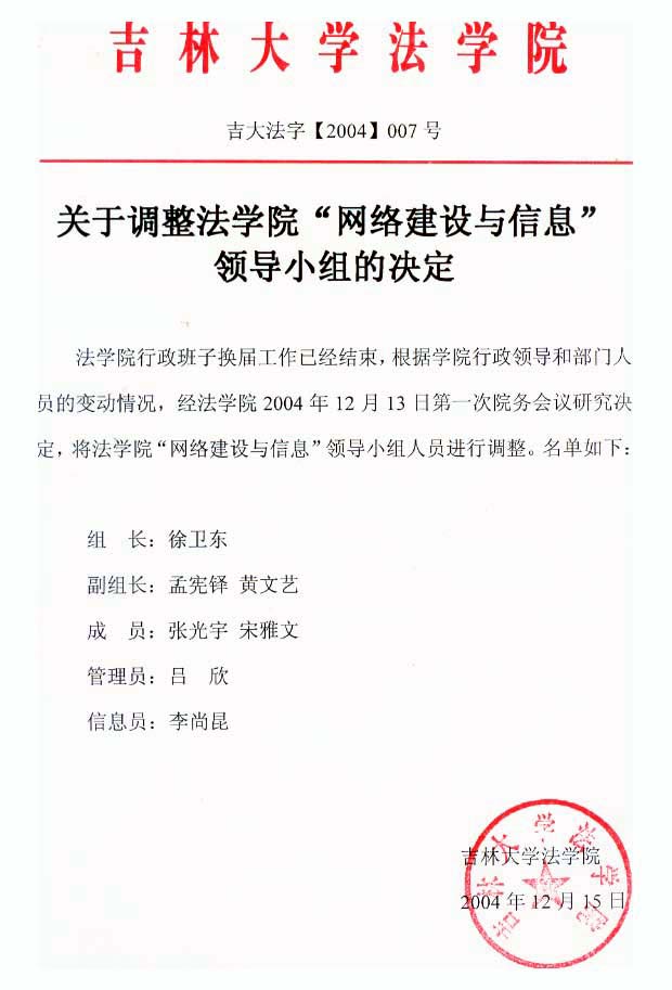 上一篇:关于调整91论坛 “防火”领导小组的决定 下一篇:关于调整91论坛 “民事调解”领导小组的决定