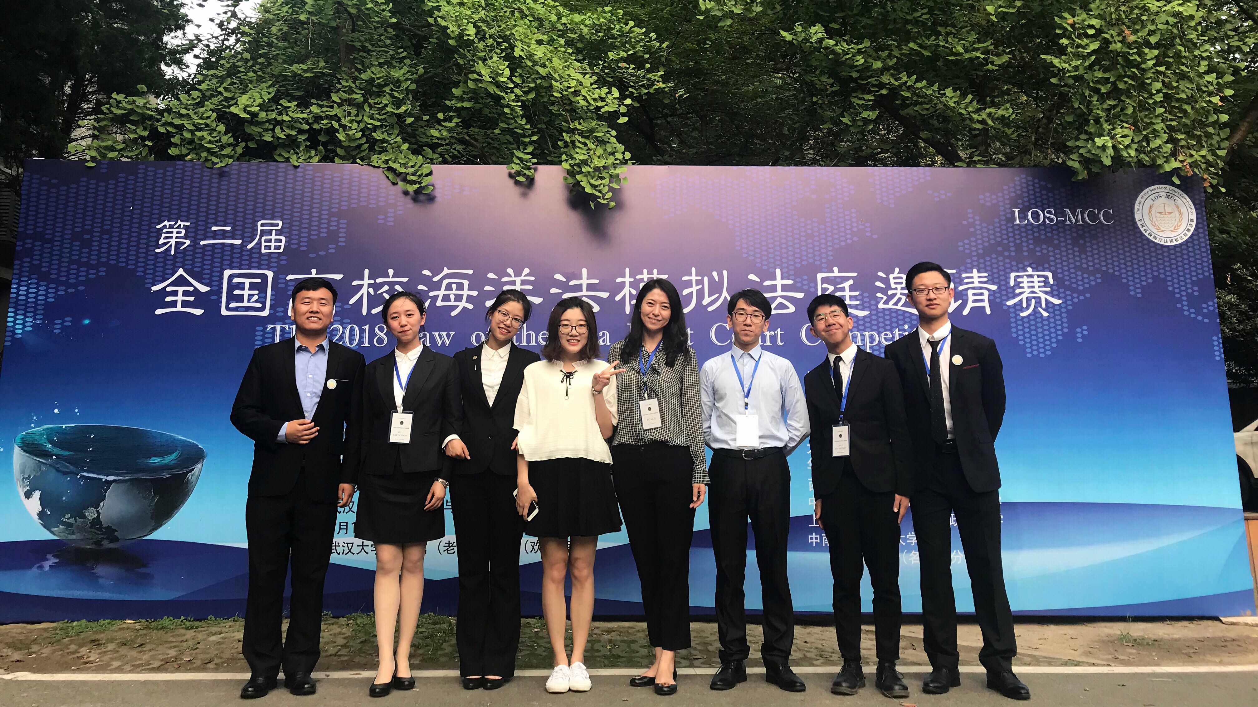 代表队由2014级本科生赵健舟、严曦冉、郭志伟、姚乃嘉和2016级本科生张侨津、张喆、崔炜、杨嵩檀组成,国际法教研部姚莹副教授担任教练并带队前往武汉参赛。