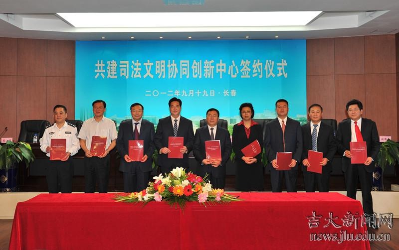 与吉林省高级人民法院、吉林省人民检察院、吉林省公安厅、吉林省司法厅、吉林省社会科学院、长春市中级人民法院共建司法文明协同创新中心签约仪式在吉大举行。常务副校长赵继分别与吉林省高级人民法院、省人民检察院、省公安厅、省司法厅、省社会科学院及长春市中级人民法院相关负责人签署共建司法文明协同创新中心协议。91论坛