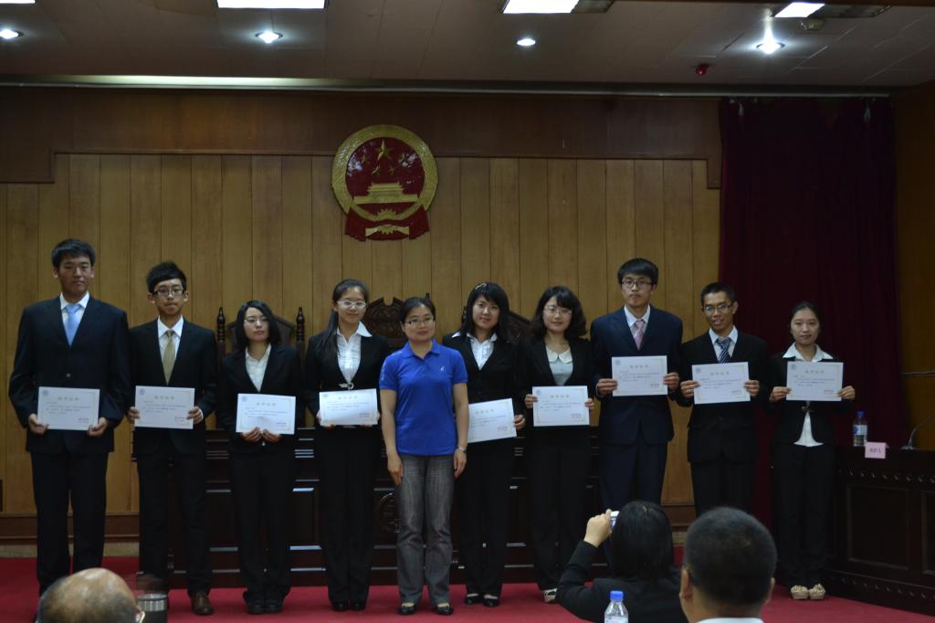 副院长、博士生导师李建华教授、吉林省高级人民法院赵星天法官分别为亚军和冠军队伍颁奖并与参赛选手们合影留念。