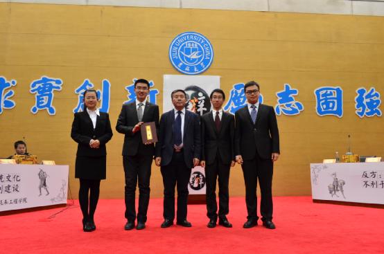 和汽车工程学院一路过关斩将,突出重围。今日,两支队伍站在决赛的舞台上,大战一触即发。本场比赛的评委是行政学院副院长许玉镇教授、马克思主义学院副书记陈松友教授、商学院副院长金晓彤教授、文学院博士生导师白杨教授和哲学社会学院博士生导师沈亚生教授;并邀请了91论坛