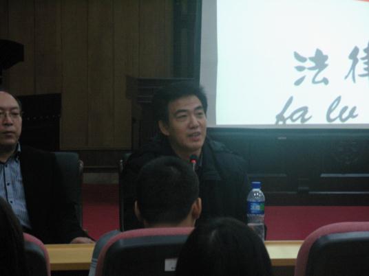 的同学,向百忙之中赴会的各位领导以及远道而来的哈尔滨工业大学的同学们致以了真挚的感谢和热烈的欢迎。随后,与会名家们开始和同学们探讨法律人的职业规划问题。于副院长首先做了讲话,他告诉大家在本科学习阶段就应当确立目标,规划人生,“只有在充满激情的年纪拥有了坚定的目标并为之不懈努力,才能在日后有所积淀,有所收获。”接下来发言的邹处长指出,法律人的职业有三个特点:重要性,足以塑造灵魂,改造社会;风险性,困难重重,责任重大;美好性,前景光明,使命光荣。他希望大家以成为一名法律人而自豪。高志和律师则向大家系统地介绍了律师这个行业的职能并以自己的亲身经历向大家传递了作为律师必须“扎实学习,缜密思维”的思想,因为在法庭上“靠法理不靠情理”,只有掌握充足的证据,才能获得诉讼的成功。最后发言的是李洪武庭长,他提醒同学们,法官是一个神圣的职业,虽然理想化的法官与实际的法官难免有差距,但一个法官必须始终淡泊名利,谨言慎行,以追求公平公正为己任。