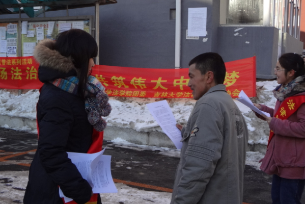 清晨寒风料峭,却浇不灭志愿者们的满腔热情。同学们早早来到了三家新村社区,集合完毕,组织者将男女分为两组:男生负责清理社区道路上的积雪,女生负责分发传单,进行法制宣传。很快,志愿者便积极投入活动中。男生们迎着寒风,脸与手冻得通红,但依旧干劲十足,努力清扫着社区人行道的积雪。而女生们则兵分两路,一路在街道上分发传单,另一路则走进了居民楼,挨家挨户进行宣传。从始至终,志愿者们都面带微笑,毫无怨言。而社区内的居民也积极配合,不少行人拿到传单后都认真阅读;当志愿者进入社区超市进行普法宣传时,店家更是主动提出将传单留到超市中,来帮助向顾客分发传单。这些举动让同学们深切的感受到了居民法治观念的不断加强。
