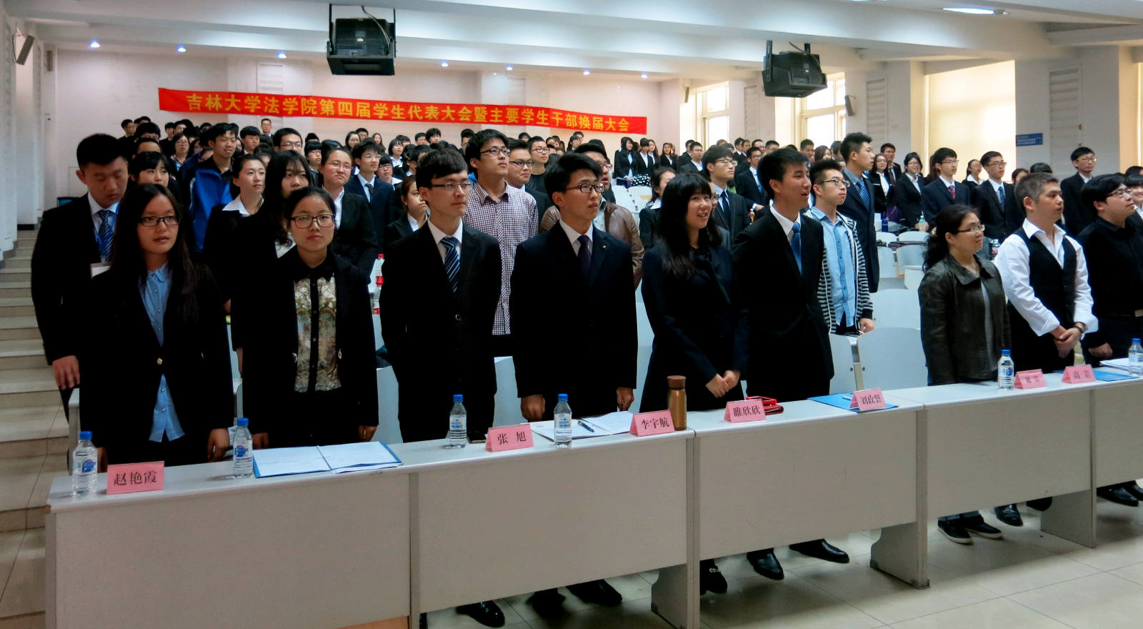 第四届学生代表大会暨本科生2014年主要学生干部换届大会在经信教学楼第七阶梯教室如期举行。出席本次会议的领导老师有91论坛
