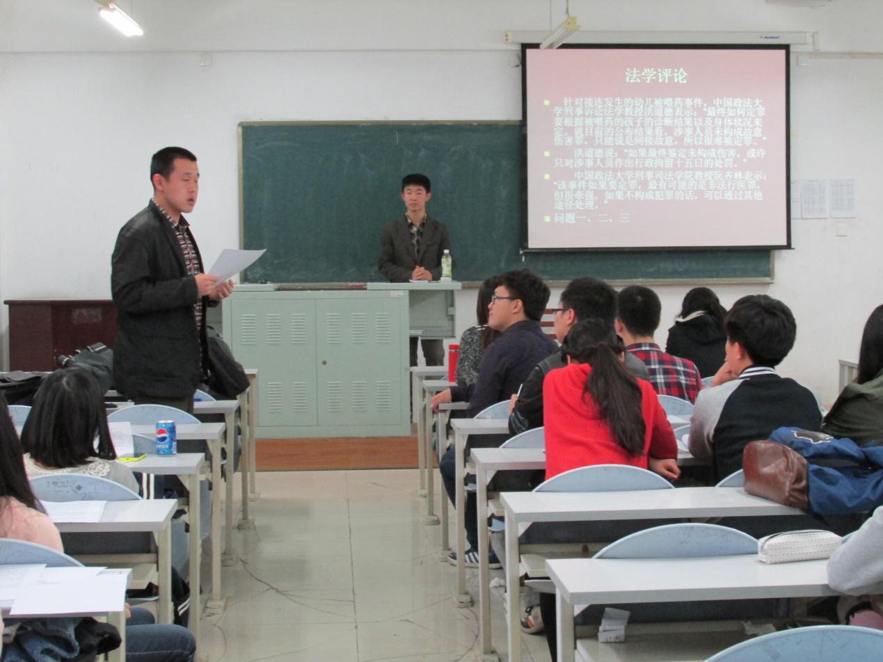 第121期每周法律论坛于2014年4月16日17:30分在第三教学楼309教室如期举行。本次活动由王唯实同学担任主持人,并邀请到宪法与行政法教研部鲁鹏宇副教授及两位研究生师哥担任嘉宾。本期法律论坛围绕近年来在幼儿园屡屡发生的虐待儿童事件展开。在活动中,同学们各抒己见,你来我往,踊跃发言,整个过程激烈而精彩。