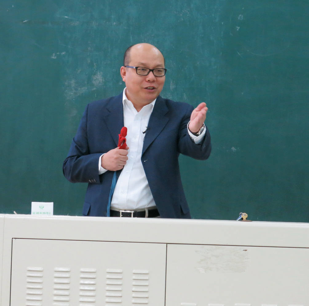 讲座的空隙时间有同学上台与孙教授关于讲座内容进行了探讨,几分钟前还说“吃不消,要休息”的孙教授又进入了敬业状态。整场讲座时而严肃时而轻松,孙教授深厚的专业素养与幽默使本场讲座变得深入浅出,耐人寻味,赢得了现场阵阵会意的笑声和掌声。