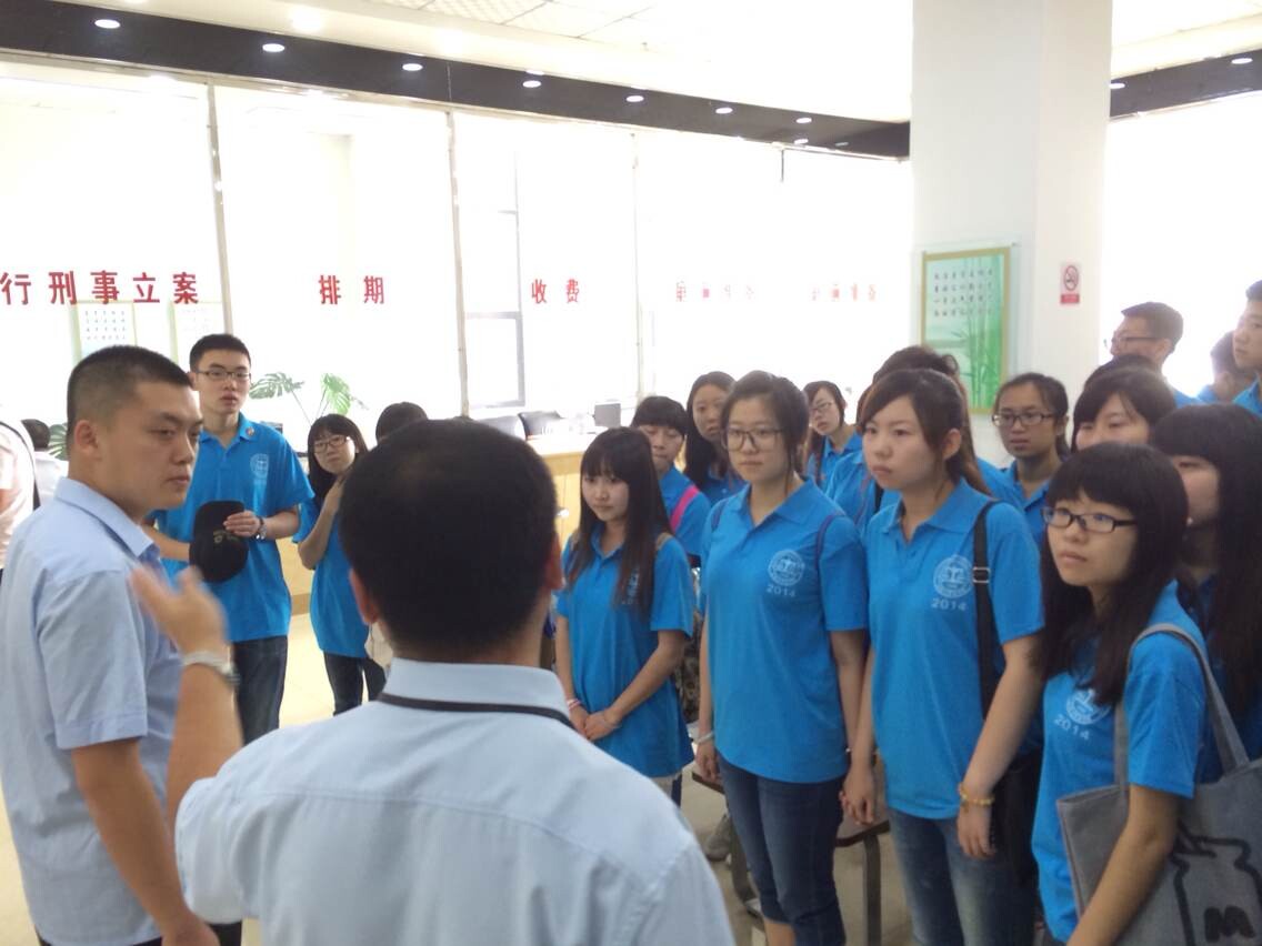 2014年“三下乡”社会实践团队一行30余人在团委书记、2012级辅导员高岩老师的带领下,来到了期待已久的蛟河市人民法院参观和听审。蛟河市人民法院副院长徐亮和张亮法官热情地接待了实践团队的成员们。