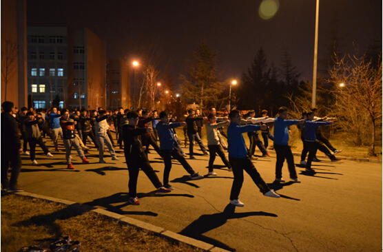 最后,以班级为单位,八个班分别向教练师哥展示本班的训练成果,其中一个班由于动作不够整齐,被教练指示重新练习,该班同学并不气馁,知耻而后勇,在这寒冷的春夜,迎着依然如刀的朔风,练习着每一个招式,似乎这每一招每一式都要和这北风做一番殊死搏斗。经过强化训练,该班终于迎来了众人的掌声。事后,记者采访该班一同学,该同学表示:“如此冷的天气要我们出来训练,起初我是抱怨的。但是后来经过一番练习,发现做一做动作就会暖起来。后来,由于我班做得不好被批评,我们心理都很不好受,我们不甘落后,那时我的一腔热血就被点燃了。觉得我们有必要勤加练习,在运动会上一展雄姿,告诉全校师生——最高荣誉91论坛