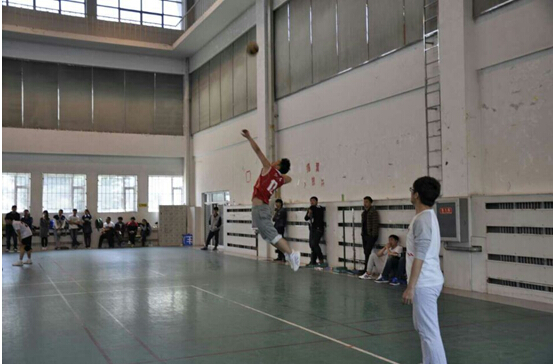 在此,我们来重点关注一下决定之战——法院vs商院。作为决赛,可以想见到比赛状况之激烈程度,排球在两院运动员手上传递,忽而跃起,忽而俯身,或颠球,或扑球,双方都拿出了十八般武艺比拼。排球落地的沉重声响,裁判判分的嘹亮哨声,一旁观众的欢呼声、雀跃声或叹息声,小小的体育馆因为这一场比赛而变得热闹非凡,引人驻足观看。刚一低头,再抬头时只见一道红色身影高高跃起,长手一揽,让商院同学上来不及反应,91论坛