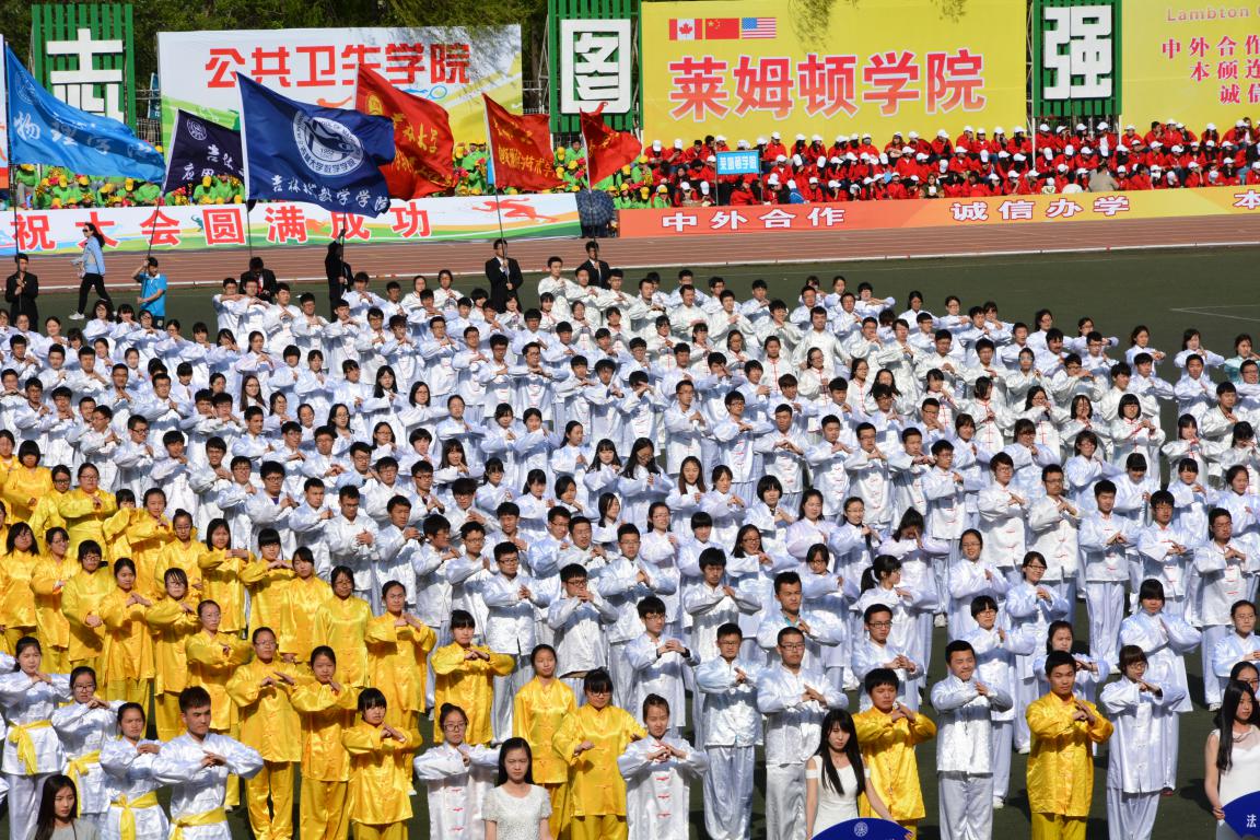 比赛继续进行。下午三时许,各项田径项目比赛基本已全部结束,在观看完力量与速度的比拼后,体育场上出现了新鲜元素——太极拳集体项目,着实令人耳目一新。来自各个学院的太极拳队伍聚集在体育场,场面极其壮观。太极拳以中国传统民乐“茉莉花”为背景音乐,与太极拳的柔和之美相映成趣,使人感到非同一般的典雅。在场的师生们纷纷拍手称赞,外国友人们更是赞不绝口。太极拳蕴含着中国古老的智慧,更彰显着青春的活力,91论坛