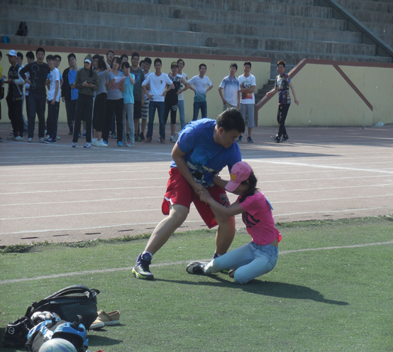虽然骄阳似火,气温高达三十多度,但是同学们都全身心地投入到比赛当中。即使汗流浃背,脸上的笑容却依旧灿烂。“四人五足”中绑在一起的脚、并在一起的肩、挽在一起的手,还有一起喊的向前跑的口号,都让小小寝室中四个人的身上迸发出无限的力量来。“抢滩登陆”中,每个寝室都各出奇招,除了脚尖点地相互扶持、四个人紧紧抱在一起等常规方法,更有一个人完全承受三个室友的重量背起室友这种高难度的组合。但是无论哪种方法,在坚持的10秒钟,每一个人都是在为寝室的荣誉而战。