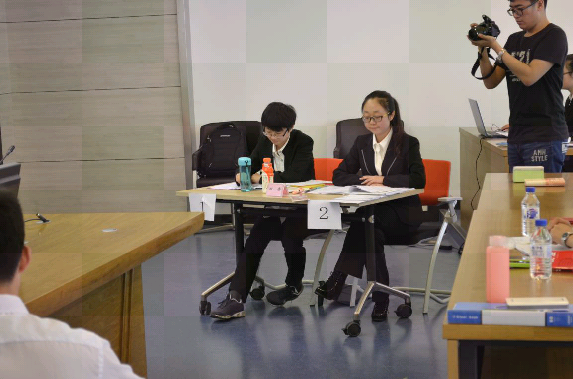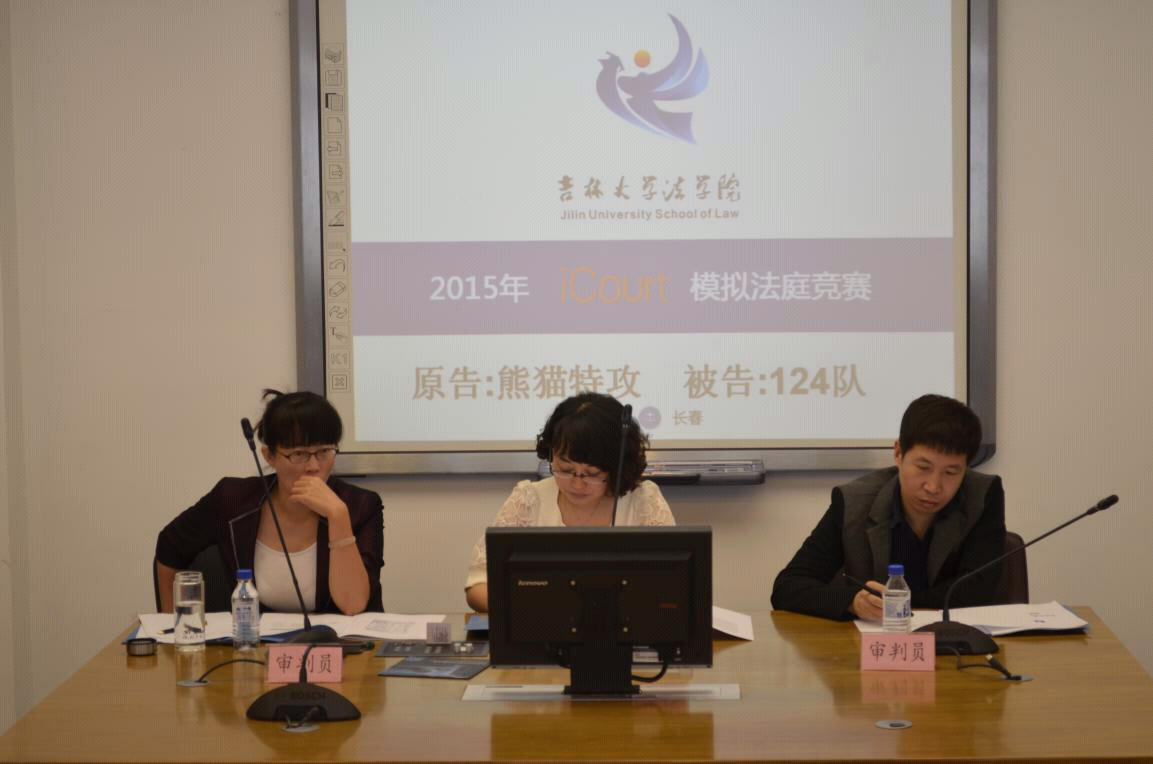 副教授田洪鋆老师和侯学宾老师,主席是刘海宁。原告是“熊猫特攻队”,被告是“124”队。在比赛还未开始时,被告针对原告使用ipad行为向合议庭提出抗议。合议庭及仲裁委员会经讨论,决定派主席来监督原告防止上网查阅资料。被告在审判长的劝告下也不再坚持抗议。接下来,庭审开始。