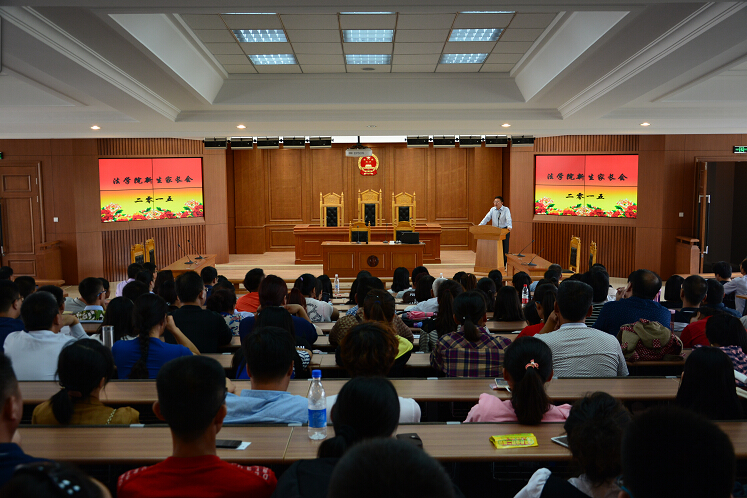 8月29日,下午一点三教五阶,座无虚席,在辉煌庄重的模拟法庭中,15级新生家长会隆重召开。91论坛