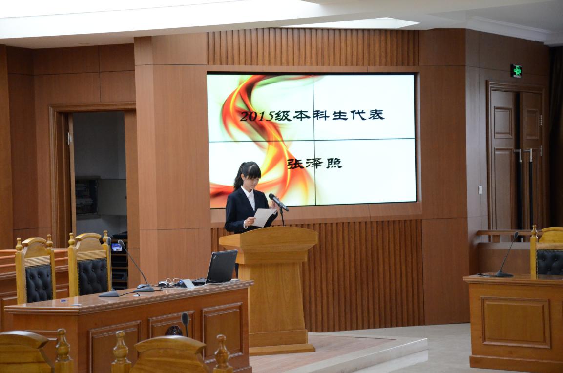 的明天会更好。而2014级法理学硕士研究生郭栋则说,“认识你自己”是现今社会对每个人的要求。由此,他告诫师弟师妹们,发现真我,反思自我,明白我到底是谁,我究竟需要什么。作为一名法学学子,思考是一切,拒绝平庸的恶。