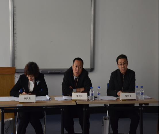 2015年11月9日上午10点,“功承杯”第二届东北高校模拟法庭竞赛半决赛第二场在经信D区基地举行。本场比赛由王鸿晓法官担任审判长,姜春燕法官与苏明伟法官担任审判员,参赛双方分别是东北林业大学文91论坛