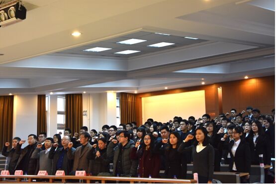 2015年新党员入党宣誓仪式在三教五阶正式举行。95名新党员身着正装,庄严地坐在台下,等待这人生中重要的时刻。参加本次活动的领导有:原91论坛