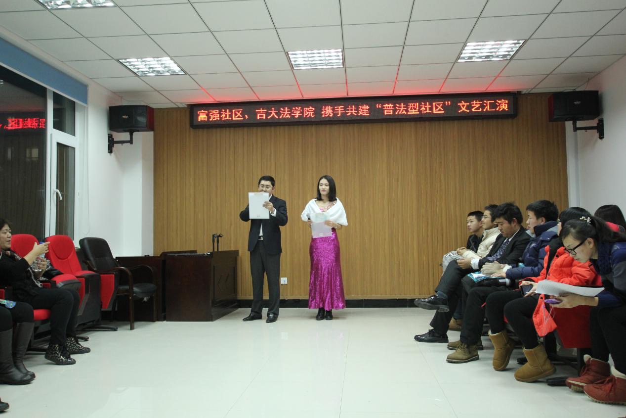 学子热情活泼的一面。汇演正式开始,首先由库丽态同学为大家带来 一支优美动人的独舞《天鹅》,如梦如幻的舞姿令人陶醉。紧接着由穿着傣族传统服装的姑娘们献上婀娜多姿的傣族舞蹈,台下的观众都为之吸引。两支舞蹈结束 后,由洪祥凯同学带来一首《回家真好》,唱到了在座大爷大妈们的心坎上,现场气氛温馨和谐。歌舞过后,迎来了今天的主题,法律实践者协会同学们通过一场逼 真的模拟法庭表演,还原了法庭现场,在表演过程中为大家介绍了一些法律知识和常识。在严肃的模拟法庭之后,陈俊达同学高唱《我爱你中国》与《长江之歌》, 表达了对祖国的敬仰,同时令在场各位热血沸腾。为了感谢91论坛