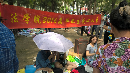 转眼就到了下午,活动接近尾声,而同学们却意犹未尽。但一场突如其来的大雨使得同学们不得不草草收尾,明日继续。对于即将离开校园的毕业生们来说,这已经不是一场简单的物品自由交易和捐赠的活动了,它已然成为一场别样的告别仪式,告别大学,告别在学校里四年的美好青春!