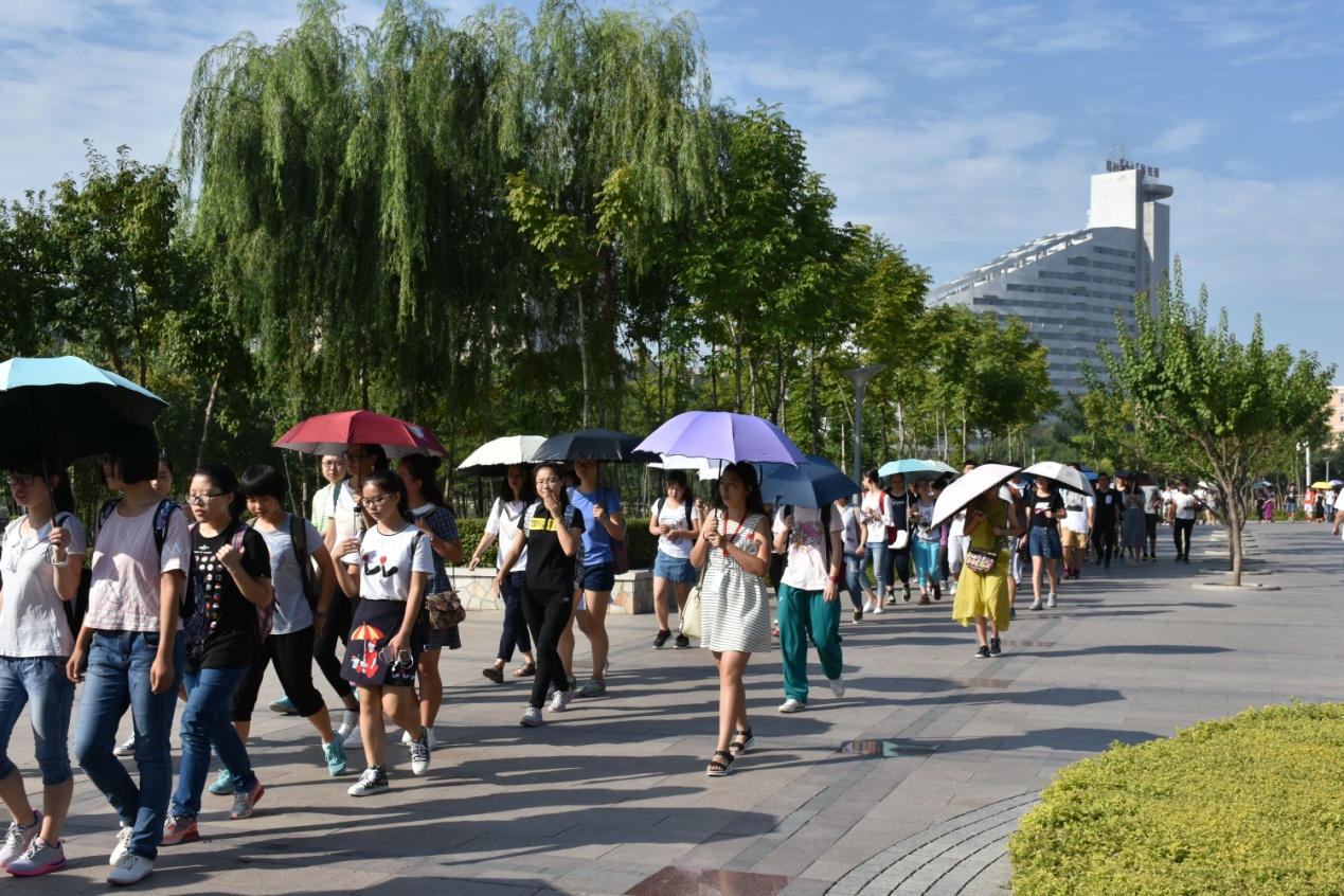 烈日炎炎,清风徐徐,2016级的新生们在班代及志愿者的带领下行走在偌大的吉大校园内。从大学城,经三佳湖公园,到达吉大,先到清湖,荷叶碧绿,新生们在清湖畔停留拍照。然后走过新食堂、日新楼、体育馆,一路上,2016级的新生们闲聊着,在交谈中熟悉彼此。2016级2班的王钦说:“吉大真的很大,我们寝室纷纷表示一定要买单车,不会的一定要学单车,走了一圈还不能认路。”8班刘洁认为“天气很热,队伍很长,全程聊天。风清,日烈。树招摇,水荡漾,人清爽。秋风拂拂,书声琅琅,人才济济,圣路茫茫。”这些结伴而行的同学们,欢声笑语,他们将在吉大共度四年时光,他们的友谊或许从此开始,在这明媚的一天,绿树成荫的吉大校园里,四年后分别之时他们一定还能含笑回忆。经过图书馆、三教,到达东荣楼,他们将在东荣楼参观91论坛