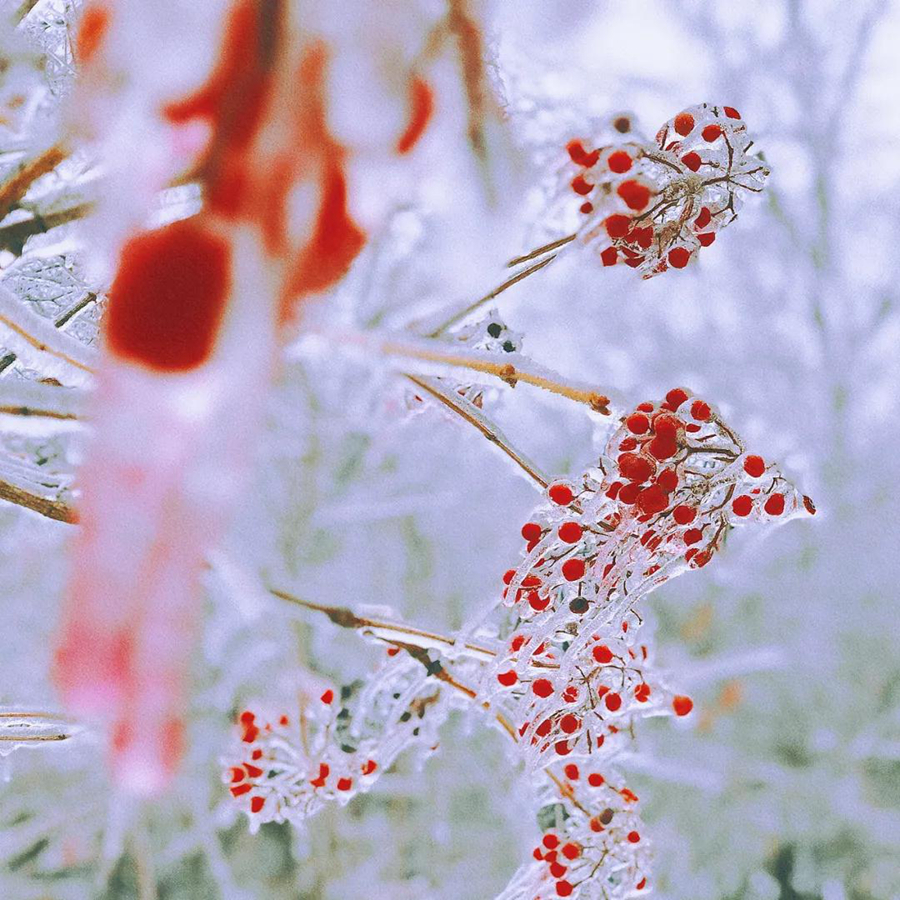 夜晚的露水 凝结作枝杈间悬挂的冰凌