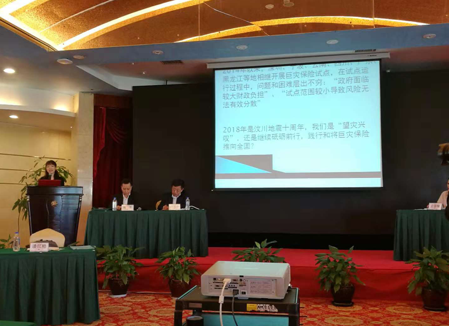 潘红艳副教授在本次会议上进行了“巨灾保险试点问题解析及对策研究”的主题发言,对于巨灾保险的体系构建提出自己独道的见解。潘红艳副教授提出巨灾的应对应由保险市场进行风险分散和政府介入两方面着手,且在时间顺位上应是市场优先、政府在后。强调政府功能的回弹性,以及政府与保险市场的协同作用。进而对巨灾保险的市场运营进行预测和展望。