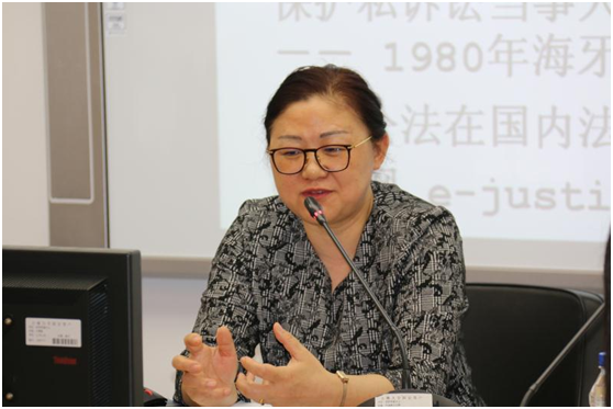 的几位老师进行了与谈,孙良国老师通过列举消费者合同重述和加拿大关于facebook用户协议判决的两个例子说明了国际民事诉讼领域的复杂情况。张兴美老师则指出国内外民事诉讼领域的发展出现了融合的趋势,在价值理念等很多问题上存在着共通性,同时对国内民事诉讼领域的信息化建设也提出了自己的看法。周晓虹老师指出随着我国对外开放程度的增加,国际民事诉讼领域也将随之产生新的变化与机遇,随后周老师对国际私法中的程序性要求,中国对于法律域外适用的态度与信息化对民事诉讼带来的影响等问题进行了简述。张艳梅老师则聚焦于禁令制度与英美法系的关系。