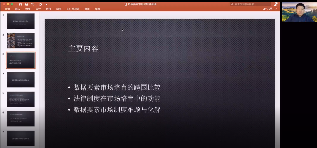 讲座开始,许可老师介绍了自己选择“数据要素市场的制度基础”这一选题的背景。随后,许可老师从“数据要素市场培育的跨国比较”“法律制度在市场培育中的功能”以及“数据要素市场制度化解”这三个部分展开本次讲座。