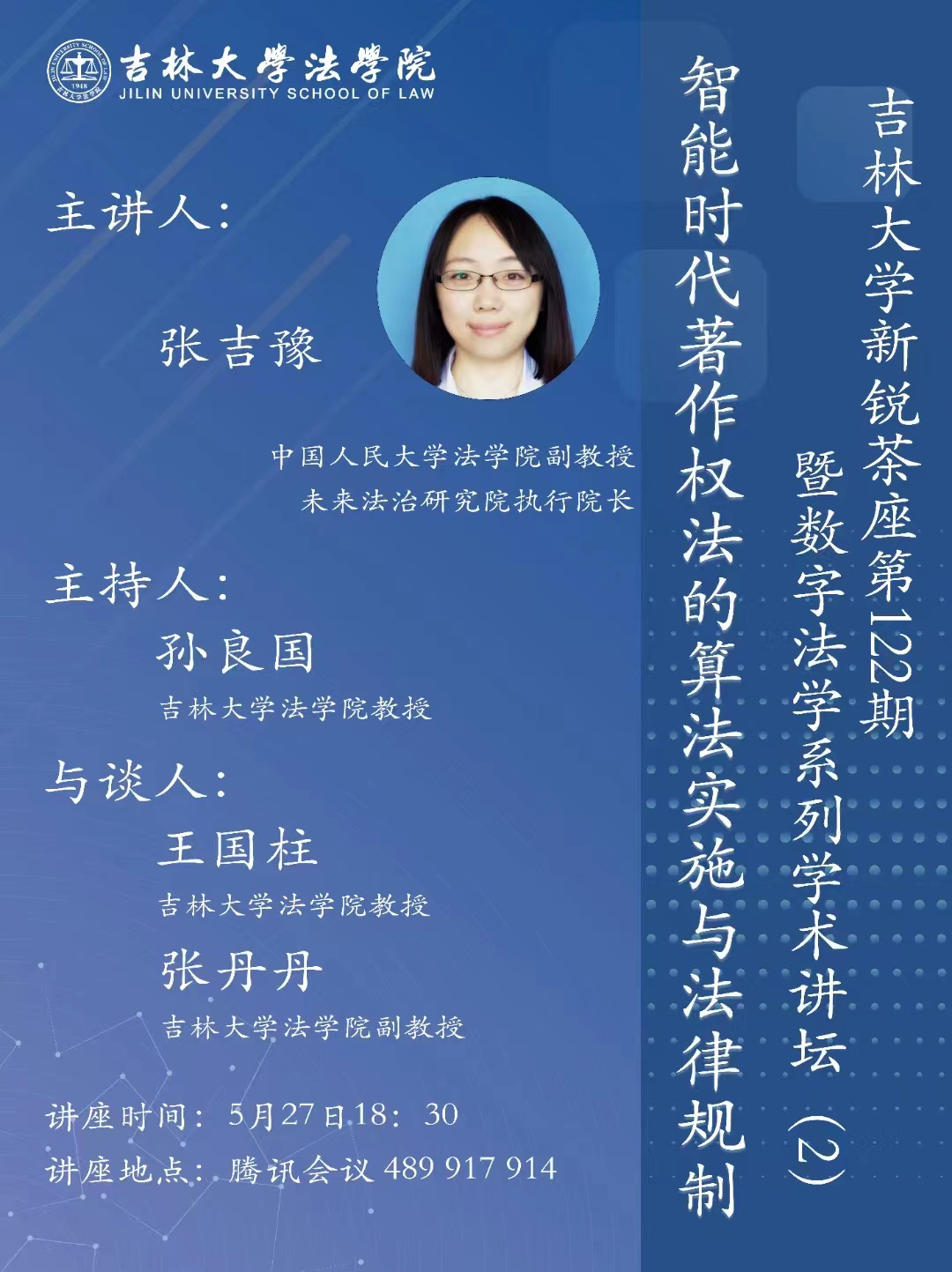 第122期新锐茶座暨第2期数字法学系列学术讲坛,讲座主题为“智能时代著作权法的算法实施与法律规制”。本次讲座由91论坛
