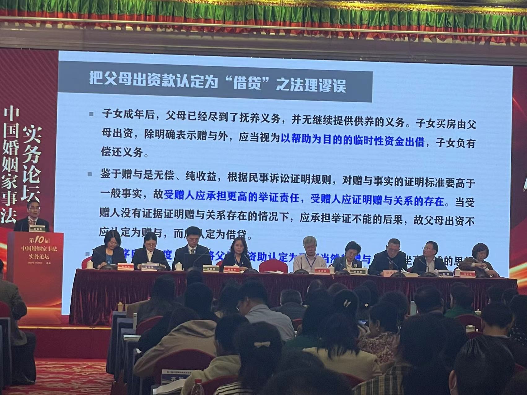 李洪祥教授和博士研究生陈凤、马佳悦参加了论坛。李洪祥教授在论坛上作了题为“论父母为子女出资购房的赠与性质”的发言。他认为第一,从司法解释规定观察,明确清晰,也不存在异议。司法解释是从静态财产关系做出的规定,如果从动态财产关系观察时,出资购房行为(法律行为理论),则应当探寻行为人意思表示的真意,其最终的解可能会有不同:可能是赠与、可能是借贷、可能是代持等等。对此,法律和司法解释没有具体规范时,必须通过立法技术“法律推定”方式来实现。在父母为子女婚后出资购房、房产登记在自己子女名下又没有约定出资性质的情况下,如何认定出资性质?第二,一般情况下,父母为婚后子女购房出资,如果没有约定的、又已经把房屋产权登记在夫妻(自己子女一方)名下的法律性质以推定为赠与符合法律和法理。推定借贷关系的合理性与不足。推定为借贷关系最可取的一点在于,它可以解决房屋(财产)的来源问题,从哪里来可以回到哪里去,这是其合理性所在。也就是说其逻辑关系是以财产来源判断财产归属,也符合财产法的基本逻辑。但是这与《民法典》关于借贷的规范不符,与《民法典》婚姻家庭编的以身份确定规则的规范不符、与《民法典婚姻家庭编司法解释(一)》的规定不符。推定为附条件赠与不合法。“保持子女婚姻幸福存续”或者“保持婚姻存续”,也就是不能离婚,违反婚姻自由的基本原则、基本法理、基本制度,显然不具有合法性。推定为父母委托子女代持父母房屋不合理。借贷和代持,以及附条件赠与,都属于给他方附加了义务,法律规定其成立、生效需要符合条件。如果符合了条件,就不属于我们要探讨的问题了。第三,推定为赠与具有合法性与合理性。赠与不负有义务,主体也没有限制;赠与按照法律行为理论观察符合父母真意,应当依据出资(购置)当时的意思表示确定,而不能依据夫妻间已经发生矛盾、离婚时来确定出资的性质。从诚信角度看,从最初赠与到后来的借贷,如果有这种变化就是不诚信;婚后所得共同制是男女婚后所得财产的基本规范。代际传承与婚姻家庭关系的身份伦理和情感特征不能忽视。