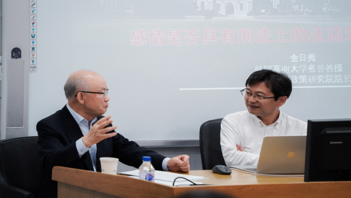 在提问交流环节,现场同学围绕报告内容就感情与犯罪认定问题、主体间性视域下的感情客观性获得问题、感情作为刑法保护对象的边界等问题与金日秀教授进行了深入讨论。金日秀教授最后坦言,本次讲座内容关注“感情”是否具有刑法上的法益适格性这一前沿问题,仍有诸多问题需要在理论层面和实践层面进行更为充分的思考,此次报告内容只是进行试探性讨论的一个尝试。金日秀教授对于感情作为刑法保护法益的独到见解也为今后相关问题的研究提供助力,给予在场同学以深刻启发,讲座取得良好效果。