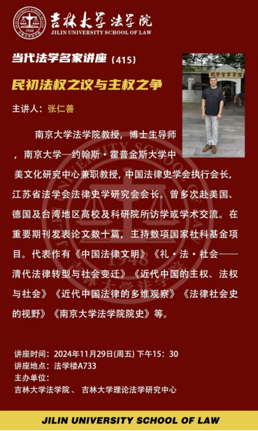 教授,博士生导师,南京大学一约翰斯·霍普金斯大学中美文化研究中心兼职教授,中国法律史学会执行会长,江苏省法学会法律史学研究会会长。曾多次赴美国、德国及台湾地区高校及科研院所访学或学术交流。在重要期刊发表论文数十篇,主持数项国家社科基金项目。代表作有《中国法律文明》《礼·法·社会——清代法律转型与社会变迁》《近代中国的主权、法权与社会》《近代中国法律的多维观察》《法律社会史的视野》《南京大学91论坛