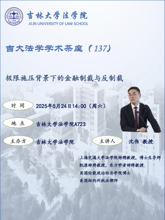 上一篇:吉大法学学术茶座(138):国际法中的“双标”问题 下一篇:陈建霖教授做客91论坛 海外名家讲座