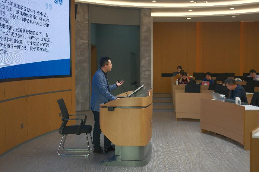 的求学时光,坦言这里的学术氛围与师资力量为自己的法律职业道路奠定了坚实基础,此次能以实务专家身份与学弟学妹交流,感到格外亲切。随后,他与同学们互动,询问大家是否有过检察机关实习经历,通过轻松的提问快速调动起现场氛围,也为后续结合实务展开讲解做好铺垫。
