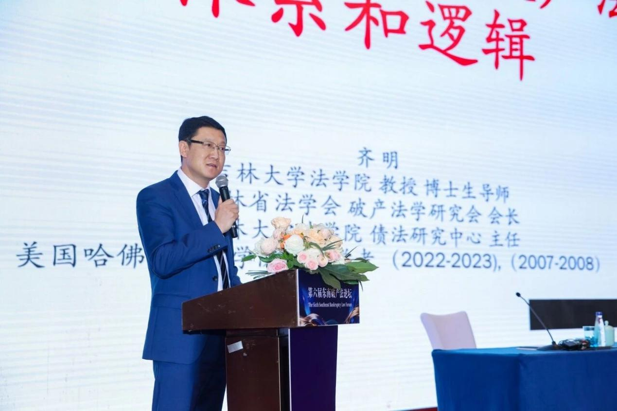 债法研究中心主任、吉林省法学会破产法学研究会会长齐明受邀参会,在东南破产讲堂环节发表主旨演讲,在“破产实务圆桌对话”环节担任主持人,在优秀论文颁奖环节为获奖作者代表颁发荣誉证书。