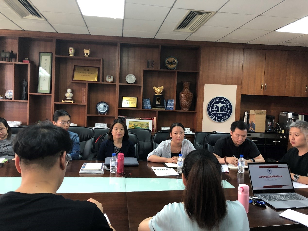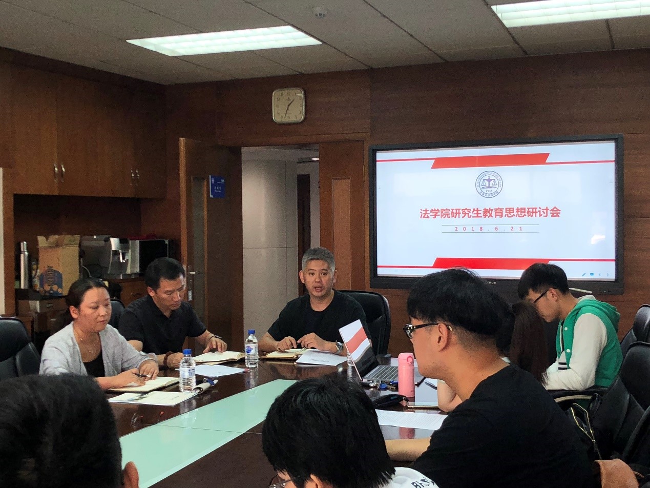 副院长任喜荣教授、徐杰副书记、法硕中心办公室主任王立国老师、研究生办公室主任张舒老师、王颖老师出席了本次研讨会,会议由研究生办公室主任高岩主持。本次会议以深入学习习近平新时代中国特色社会主义思想、党的十九大精神和全国高校思政工作会议精神为背景,认真领会杨振斌书记和李元元校长在新时代教育思想大讨论动员大会上讲话和报告的思想内涵。