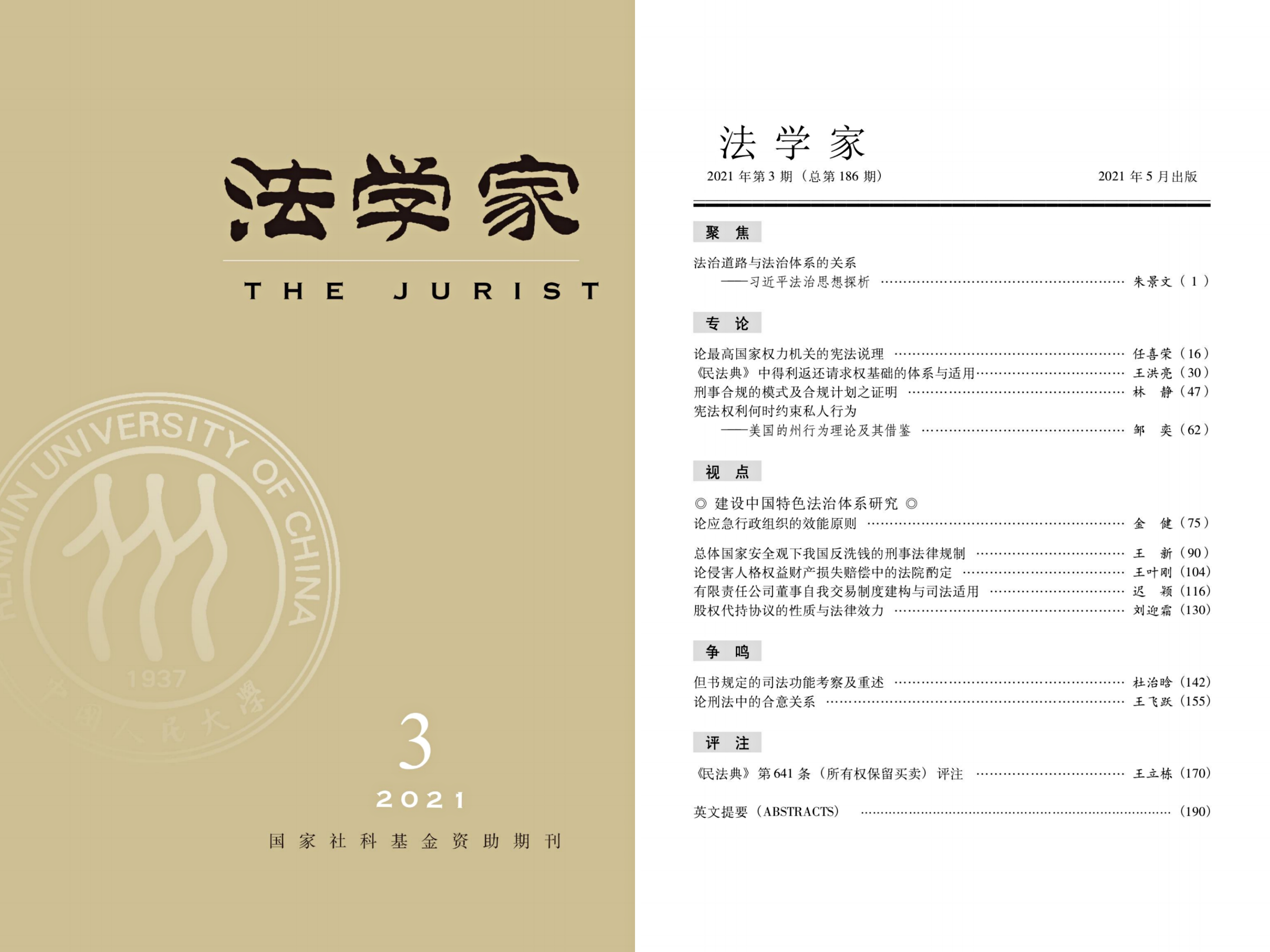 任喜荣教授在《法学家》2021年第3期(第16-29页)发表论文《论最高国家权力机关的宪法说理》,全文共计2.1万余字。