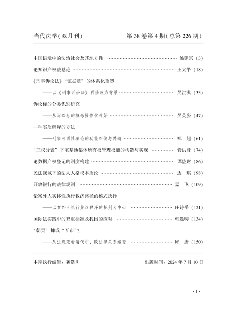 ——从诉讼标的概念操作化开始……………………………………吴英姿(47)